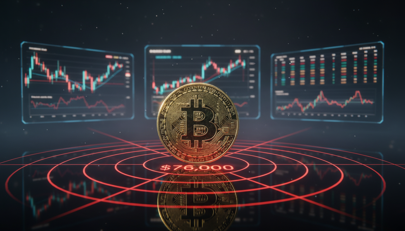 The current price action around $76,000 represents the third consecutive day of testing for Bitcoin at this level. The sell wall consists of orders from two primary groups: traders attempting to short the range high in expectation of a reversion toward $68,000, and those with liquidation risk above current levels who are defending against a breakout.
